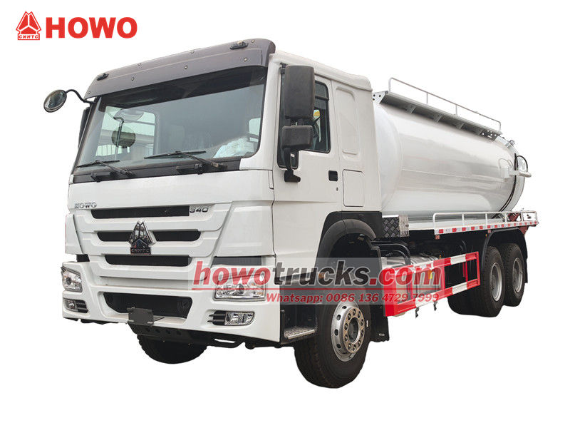 HOWO 15cbm vakuumli so'rish mashinasi HOWO 6x4 shassisiga asoslangan bo'lib, 340 ot kuchiga ega WP10.340E22 dizel dvigateli va kuchli va boshqarish oson bo'lgan HW19710 vites qutisi bilan jihozlangan. Avtomobil shahar kanalizatsiyasi va sanoat quvurlari kabi turli xil chuqurlashtirish ehtiyojlarini qondira oladigan 15cbm vakuumli idish bilan jihozlangan.