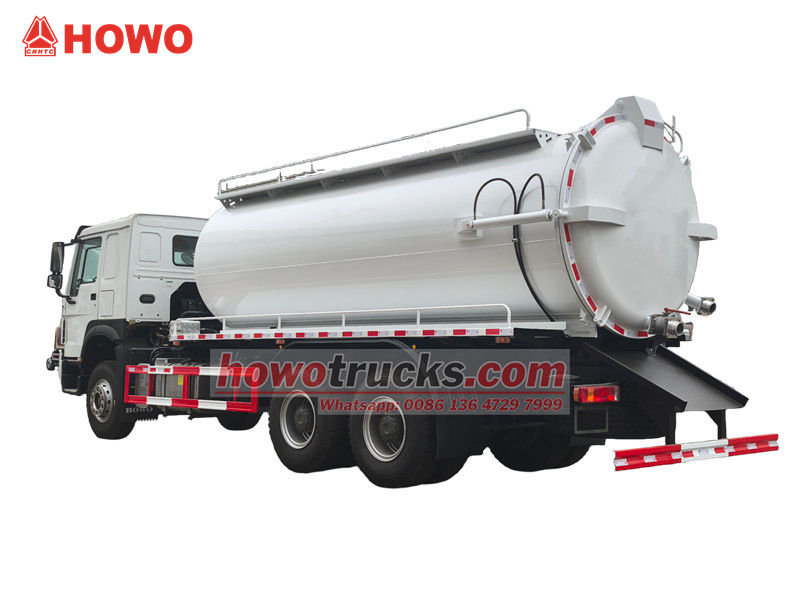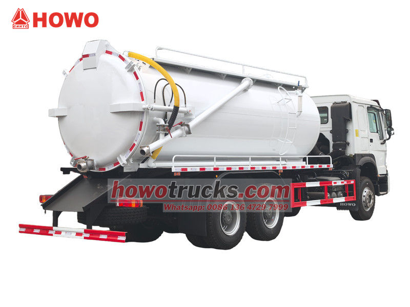 HOWO 15cbm vakuumli kanalizatsiya assimilyatsiya mashinasi (shuningdek, HOWO septik tank nasosi yuk mashinasi, HOWO 15cbm vakuumli assimilyatsiya mashinasi, HOWO loy vakuumli nasos tankeri yuk mashinasi, Howo 10 g'ildirakli kanalizatsiya chiqindilarini yo'qotish tankeri va boshqalar deb ataladi) iflos suv, loy, septik, xom neft va mayda toshlar, g'ishtlar kabi qattiq moddalarni yig'ish, tashish va tushirish uchun ishlatiladi. Kanalizatsiya, axlat chuquri, jarlik va boshqalarni tozalash uchun javob beradi.