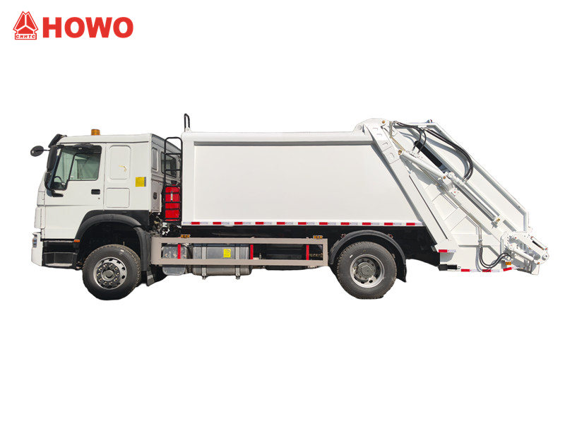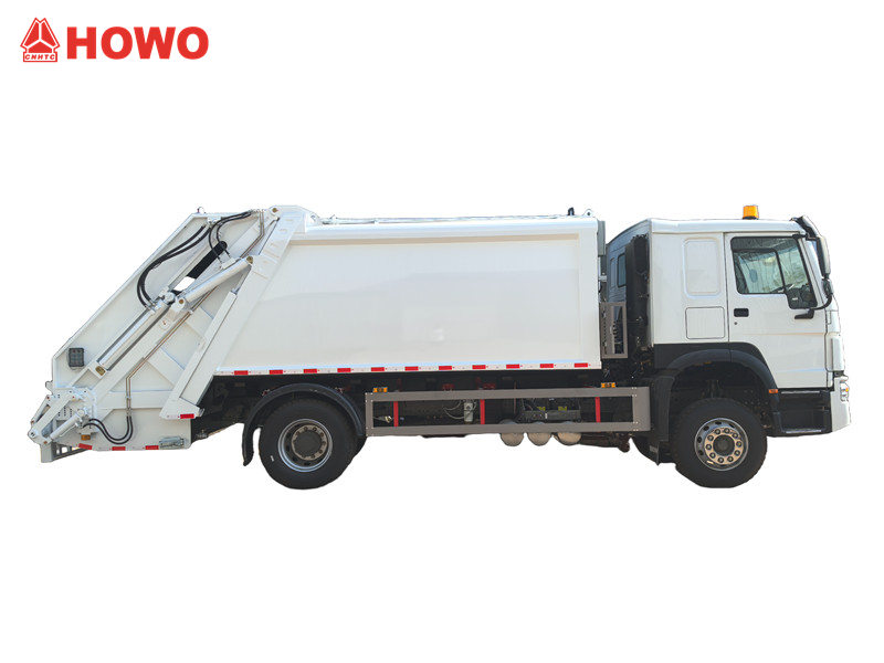 Howo chiqindilarni siqish mashinasi shassi, axlat bo'limi, gidravlik tizim, boshqaruv tizimi va chelakni aylantirish mexanizmidan iborat. To'liq yopiq bo'linma tashish paytida chiqindilarning sochilib ketishi va oqib ketishining oldini oladi, yo'llarni toza saqlaydi. Orqa tomondagi chelakni aylantirish mexanizmi yoki ag'darish moslamasi chiqindilarni avtomatik ravishda yuk mashinasi bo'linmasiga tashlaydi, bu esa qo'l mehnatini sezilarli darajada kamaytiradi.