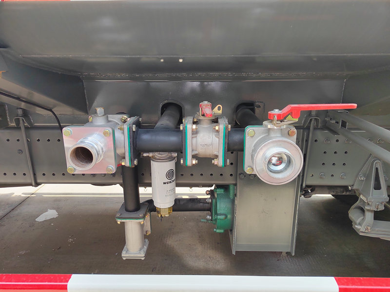 Avtomobilning pastki old qismida old tomonga buriladigan purkagich joylashgan bo'lib, u yo'l yuzasidan chang va cho'kindilarni samarali yuvish uchun ventilyator shaklida suv purkaydi. Avtomobilning orqa tomoniga orqa purkagich tizimi o'rnatilgan bo'lib, changni kamaytirish va namlikni saqlab qolish uchun suvni yo'l yuzasi bo'ylab teng ravishda taqsimlaydi. Ikkala tomondagi purkagichlar yo'l chetidagi yashil kamarlarni sug'oradi, yuqori pozitsiyali purkagichlar esa baland daraxtlar va o'simliklarni sug'orish uchun mos keladi.