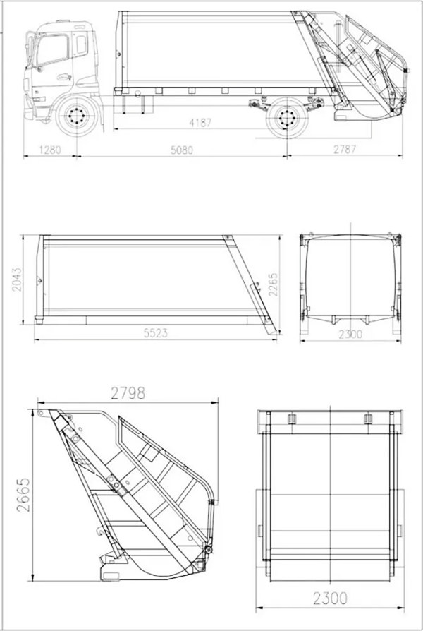 8cbm axlat tashuvchi yuk mashinasi kuzovlari (shuningdek, 8cbm orqa yuklagichli axlat mashinasining yuqori korpusi, chiqindilarni siqish mashinasining ustki tuzilishi, orqa yuklagichli suv yig'ish mashinasi to'plami, axlat siqish mashinasining ustki tuzilishi, axlat siqish mashinasining yuqori korpus to'plami, orqa yuklagichli siqish mashinasining yuqori korpusi va boshqalar deb ham ataladi). axlatni yig'ish, tashish va olib tashlash uchun maxsus ishlatiladigan yangi turdagi sanitariya vositasidir. Yuqori korpusi 8 kubometrli axlat qutisi, orqa qismi chelakni burish mexanizmi bo'lib, yuk mashinasini yuklash va tushirishning 3 ta usuli mavjud.
