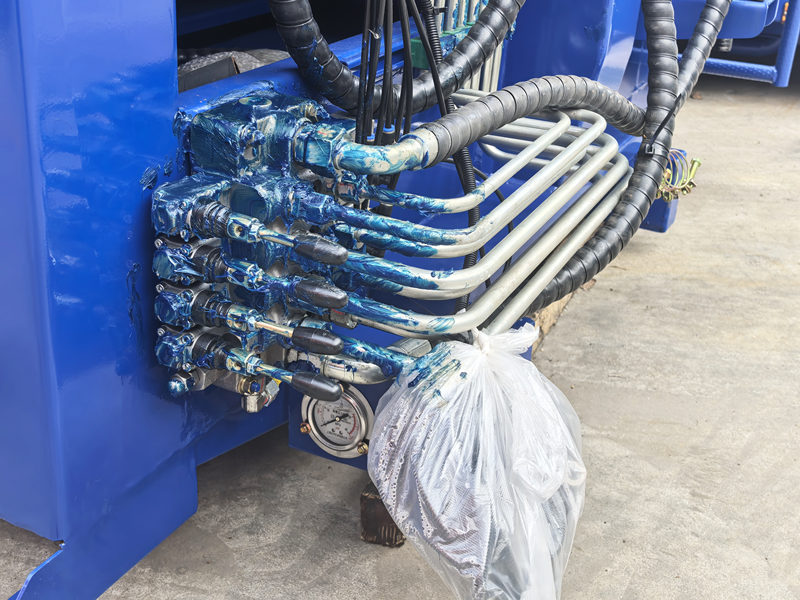 2. Shlangi tizim siqish moslamasini faollashtiradi, siqish plitasini gidravlik silindrlar orqali oldinga va orqaga harakatlantiradi. Bu chiqindilarni kuchli siqib, saqlash idishiga itaradi, bu uning hajmini sezilarli darajada kamaytiradi va yuk ko'tarish qobiliyatini oshiradi. Butun jarayon elektro-gidravlik kombinatsiyalangan boshqaruv tizimi tomonidan avtomatlashtirilgan bo'lib, elektron boshqaruv tizimi va gidravlik tizim aniq, xavfsiz va ishonchli ishlashni ta'minlash uchun muvofiqlashtirilgan holda ishlaydi.