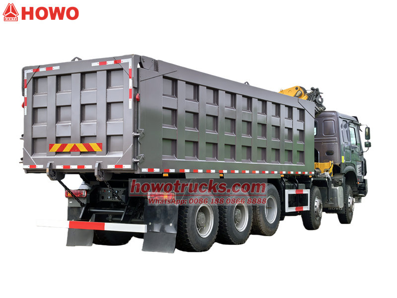 13000*3The Howo kranli konchilik damperiustiga qurilgan Howo og'ir 10x4 haydovchijihozlangan shassi WP12S400E201dizel dvigateli va HW19710 10-tezlikli vites qutisi. U kuchli quvvat ko'rsatkichlariga ega va murakkab ish sharoitlariga moslasha oladi. U jihozlangan CS bo'g'imli krani maksimal ko'tarish quvvati bilan 8tonna.