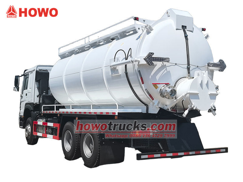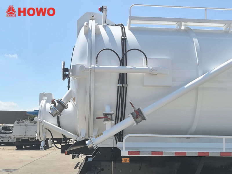 Howo 20 cbm vakuumli so'rish nasosi asosan muhrlangan bak orqali salbiy bosim hosil qilish orqali ishlaydi, bu esa kanalizatsiya, loy va aralashmalarni saqlash uchun bakga tezda tortadigan kuchli so'rish kuchini yaratadi.