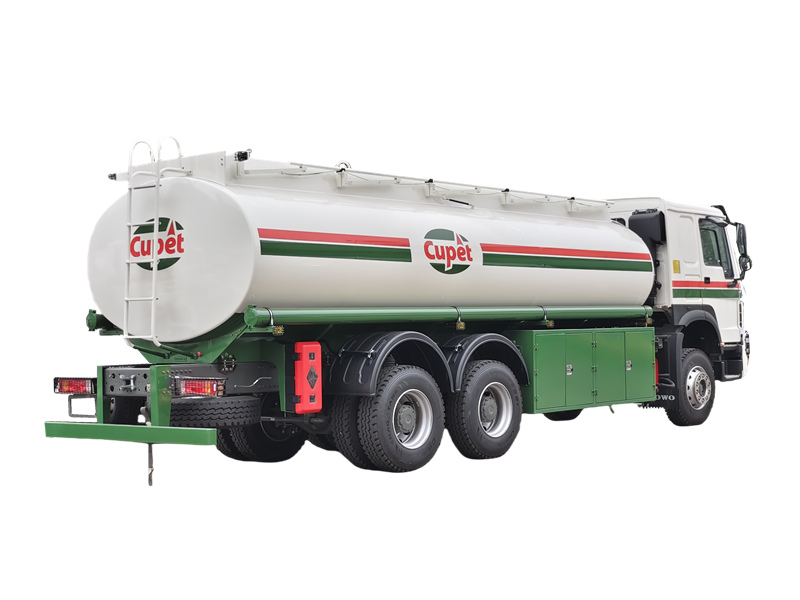 13000+13000CS TRUCKS tomonidan ishlab chiqarilgan HOWO yonilg'i tashuvchi yuk mashinasi HOWO 6×4 shassisi, bak korpusi, quvur liniyasi tizimi va yonilg'i quyish uskunasidan iborat. U asosan kerosin, benzin va dizel kabi yoqilg'ilarni tashish uchun mo'ljallangan. Bak 20 000 litr sig'imga ega va yuqori mustahkamlikdagi uglerodli po'lat plitalardan yasalgan bo'lib, tashish paytida suyuqlik ta'sirini minimallashtirish uchun ichkarida payvandlangan bo'ylama va ko'ndalang to'lqinlarga qarshi to'siqlar mavjud. Bak ikkita mustaqil bo'linmaga bo'lingan bo'lib, bu ikki xil yoqilg'i turini (masalan, dizel va benzin) bir vaqtning o'zida tashish va alohida tushirish imkonini beradi. U Yevropa standartidagi lyuk qopqog'i, favqulodda o'chirish klapani va 60 m³/soat oqim tezligiga ega yonilg'i pompasi kabi keng qamrovli xususiyatlar bilan jihozlangan.
