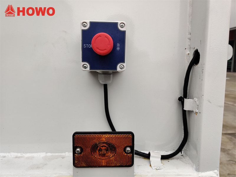 HOWO orqa yuklagichining orqa eshigi oziq-ovqat paneli va tutqichi bilan o'rnatilgan, ishchi stendi va axlat yig'ish uchun qulay