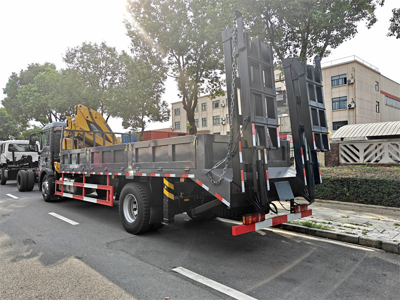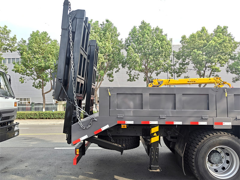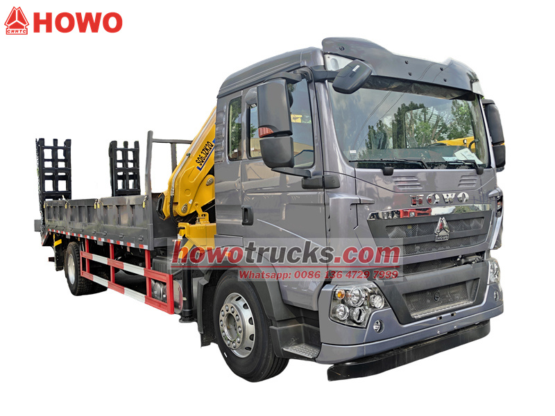 ♦ Howo 4x2 yuk mashinasi 6 tonnalik bo'g'imli bumli kran (10 tonna moment/8,6 m balandlik) va 20 tonnalik yassi yuk tashish funksiyasi bilan jihozlangan..