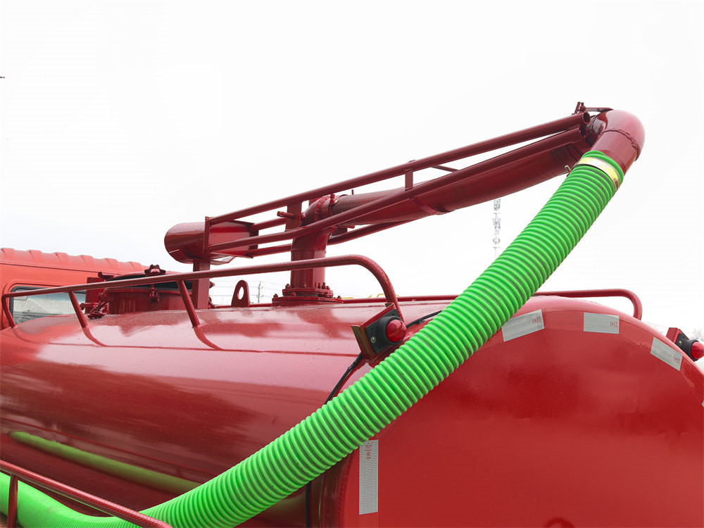 • Bak: 4 kubometrli uglerod po'latdan yasalgan bak, ≥ 4 mm qalinlikda, xizmat muddatini uzaytirish uchun korroziyaga qarshi va zangga chidamli qoplama bilan ishlangan. Yuqori qismiga 6 metrli tortib olinadigan so'rish bomi o'rnatilgan bo'lib, bu ko'p burchakli ishlashni ta'minlaydi. Orqa tomoniga tortishish kuchi yoki siqilgan havo yordamida chiqarish imkonini beruvchi chiqarish klapani o'rnatilgan.