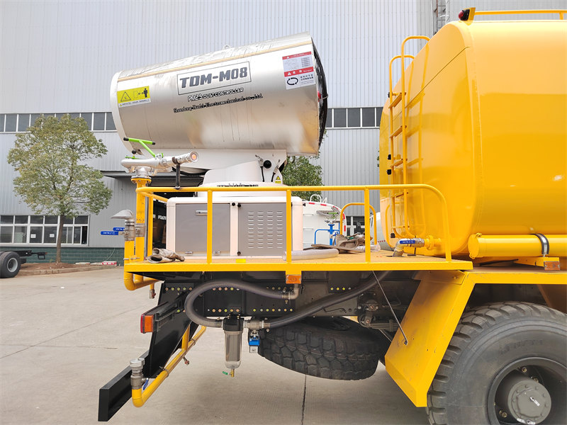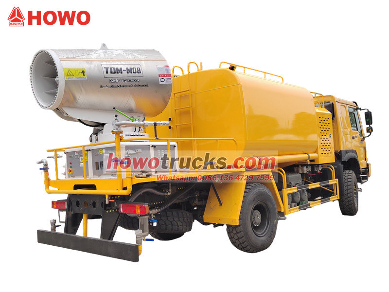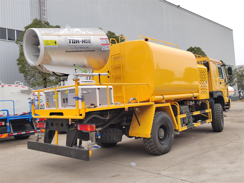 The HOWO 4×4 suv to'pi yuk mashinasi 80 metrli ultra uzoq masofali suv to'pi va yuqori bosimli suv purkash tizimini birlashtiradi. To'p 90 ta nozul bilan jihozlangan bo'lib, 20 000 m³ gacha bo'lgan qoplama maydoniga ega mayda suv bug'ini (20-200 mkm) purkashga qodir, changni samarali bostiradi. 10 000 litrli katta sig'imli uglerod po'latdan yasalgan suv idishi, 60 m³/soat oqim pompasi bilan birgalikda ko'cha tozalash, yo'l changini kamaytirish va qishloq xo'jaligida purkash kabi ko'p ssenariyli dasturlarni qo'llab-quvvatlaydi. Simsiz masofadan boshqarish pulti va sensorli ekranli boshqaruv tizimlari bilan u moslashuvchan boshqaruvni taklif etadi, bu esa uni konchilik hududlari, portlar, shahar favqulodda vaziyatlari va boshqa sohalar uchun universal yechimga aylantiradi.