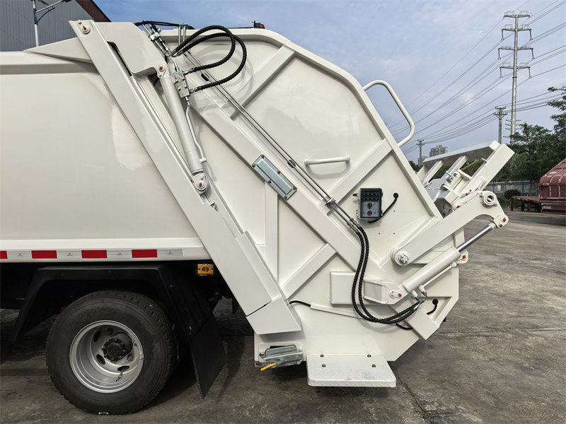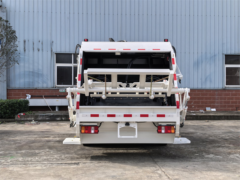 4. Axlat qutisini ko'tarish mexanizmi: Orqa tomoni ko'p sig'imli axlat qutilarini tashish uchun ko'tarish mexanizmi bilan jihozlangan bo'lib, bu avtomatik yuklash va tushirish imkonini beradi.