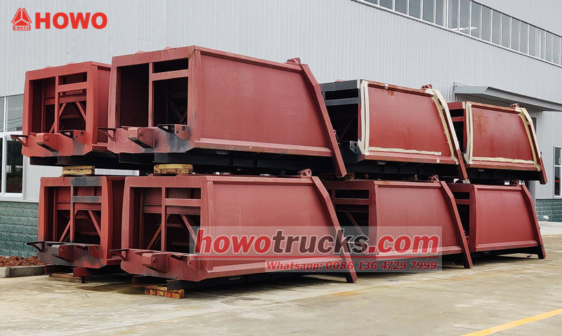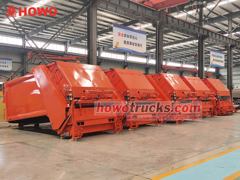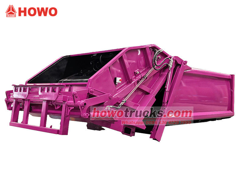 Howo 8cbm siquvchi axlat transport vositasining ustki tuzilishi (shuningdek, orqa yuklagichli kompaktorli yuk mashinasining yuqori korpusi, 8cbm axlat kompaktorli yuk mashinasining yuqori korpus to'plami, axlat kompaktorli yuk mashinasining ustki tuzilishi, chiqindilarni siquvchi yuk mashinasining yuqori korpus to'plami, orqa yuklagichli suv yig'ish yuk mashinasi to'plami va boshqalar deb ataladi). Yuqori korpus 8 kub santimetrli axlat qutisi, orqa qismi chelakni aylantirish mexanizmi, yuk mashinasini yuklash va tushirishning 3 ta usuli mavjud.