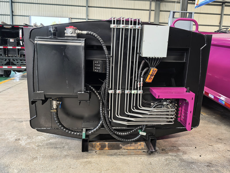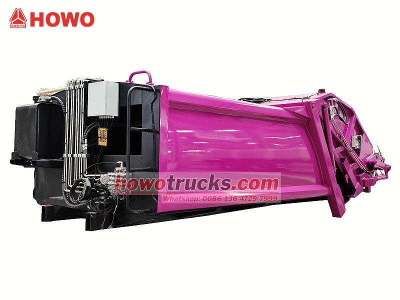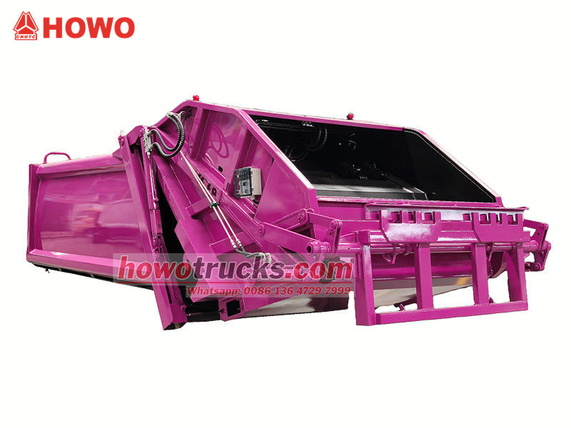 PLC control systemHowo 8 CBM siquvchi chiqindi tashish mashinasining ustki tuzilishi chiqindi konteyneri, yuklagich, itarish pichog'i, siqish plitasi va gidravlik tizimdan iborat. Konteyner yuqori mustahkamlikdagi, korroziyaga chidamli po'lat plitalardan payvandlangan bo'lib, oqava suv oqishini oldini olish uchun germetik muhr hosil qiladi.