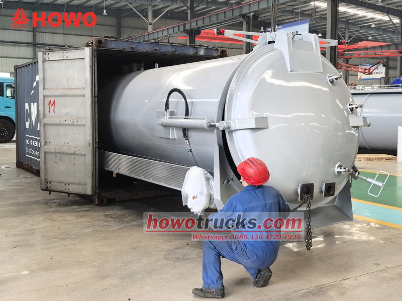 Howo 8cbm cesspool assimilyatsiya tankeri korpusi (shuningdek, 8cbm vakuumli assimilyatsiya nasosi yuk mashinasi to'plami, 8000 litrli vakuumli tanker yuk mashinasining yuqori korpusi, 8cbm vakuumli kanalizatsiya assimilyatsiya yuk mashinasi to'plami, kanalizatsiya chiqindilarini yo'q qilish tankerining yuqori korpus to'plami, 8cbm vakuumli tanker yuk mashinasining ustki tuzilishi, loy vakuumli nasosli tanker yuk mashinasi to'plami, vakuumli assimilyatsiya yuk mashinasining yuqori korpus to'plami va boshqalar deb ataladi) iflos suv kabi suyuqliklarni tozalash va yig'ish uchun shassilarga o'rnatiladi. Kanalizatsiya, axlat chuquri, axlat qutisi, jarlik va boshqalarni tozalash uchun javob beradi.