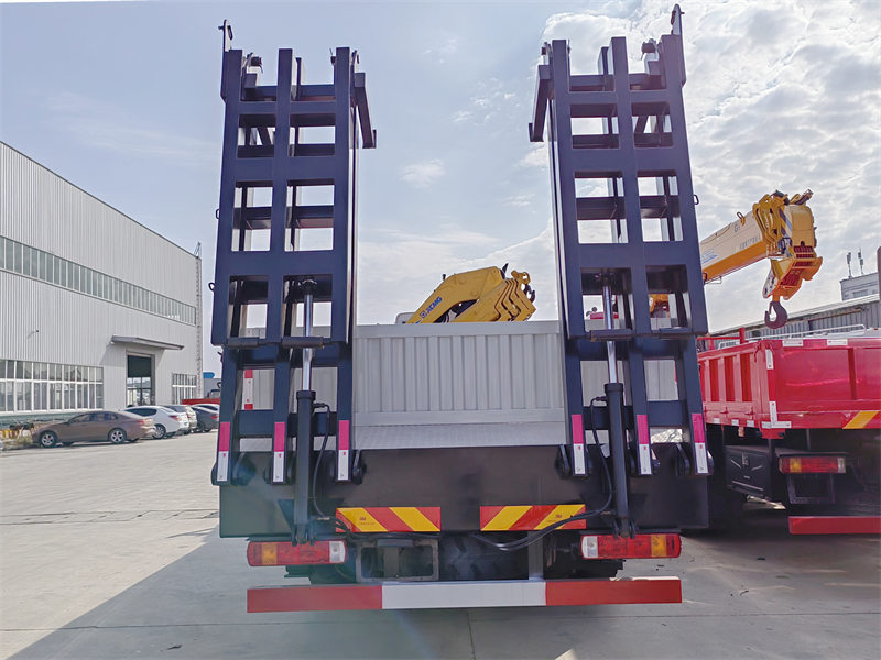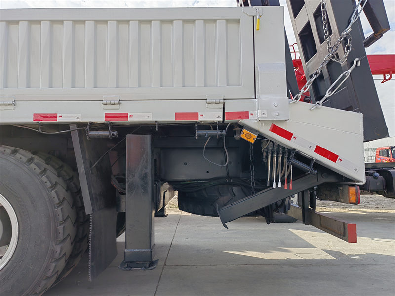 ♦ Howo 8x4 yuk mashinasi 16 tonnalik bo'g'imli bumli kran (10 tonna moment/8,6 m balandlik) va 20 tonnalik yassi yuk tashish funksiyasi bilan jihozlangan..
