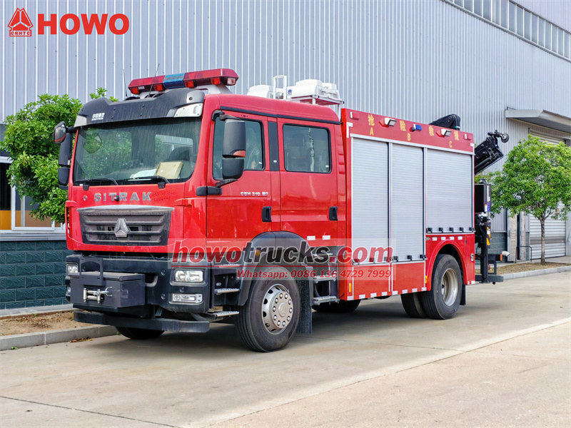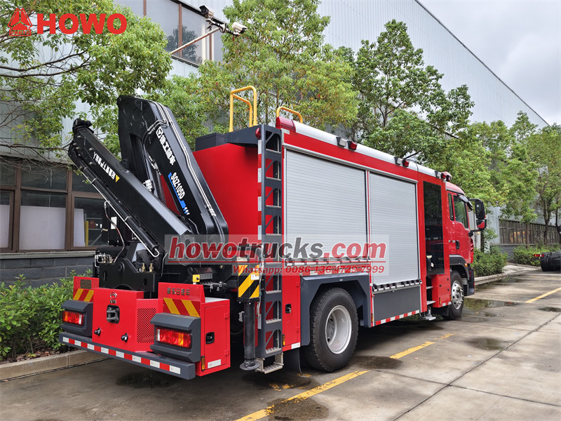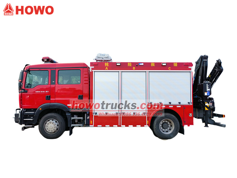 Premium Howo C5H shassisi asosida ishlab chiqarilgan Howo favqulodda yoritish yong'in mashinasi yuqori quvvatni ekologik toza chiqindilar bilan birlashtiradi. To'liq g'ildirakli haydovchi tizimi bilan u har qanday qiyin yo'l sharoitlariga bardosh bera oladi. Mustaqil energiya ishlab chiqarish tizimi va favqulodda yoritish tizimi bilan jihozlangan bo'lib, yong'in sodir bo'lgan taqdirda qutqaruv yo'llarini tezda yoritish uchun ko'p burchakli, har tomonlama yoritishni ta'minlaydi. Boshqaruv paneli turli ehtiyojlarni qondirish uchun tanlanadigan tillar va turli xil ixtiyoriy konfiguratsiyalarni taklif etadi. Howo yong'in qutqaruv mashinasi shuningdek, og'ir yuklarni ko'tarish uchun orqa qismida 6 tonnalik katlanadigan bumli kran bilan jihozlangan. A 3 tonna, 35 metrlik elektr tortish arqoni kabinaning oldida joylashgan.
