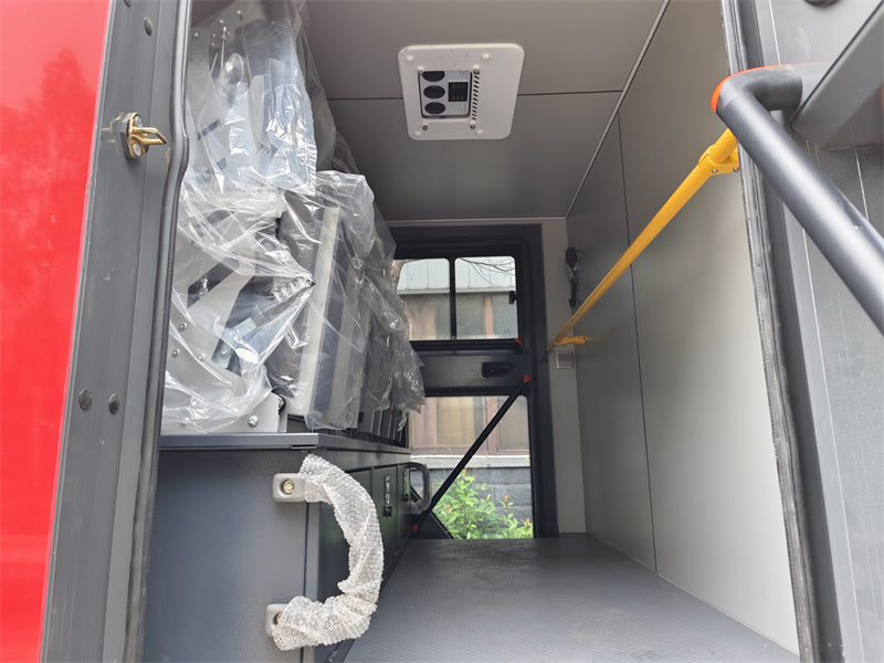 TIchki qismi makondan foydalanishni optimallashtirish uchun sozlanishi alyuminiy qotishma saqlash javonlari va aylanuvchi treylerlar bilan jihozlangan.