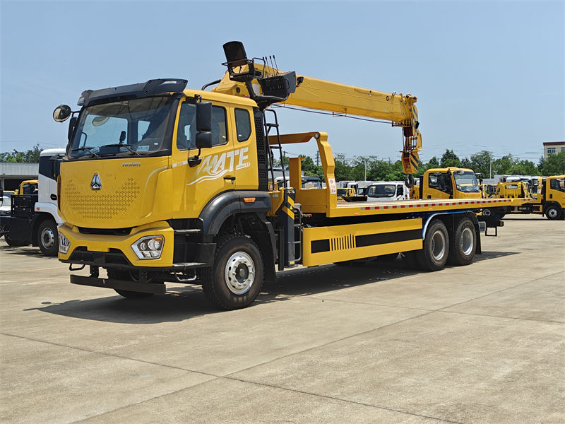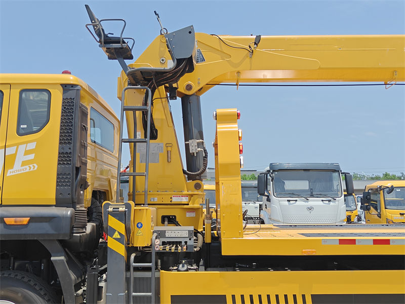 Ushbu 8T kranli Howo yassi yuk mashinasi ko'p qirrali va yaxshi ishlab chiqilgan maxsus yuk mashinasidir. U Xitoyning Yuchai Engine brendining dizel dvigateli bilan jihozlangan bo'lib, 260 ot kuchiga ega bo'lib, turli xil ish ehtiyojlarini qondira oladi. Yangi M9 hashamatli kabinasi uch kishini sig'dira oladi va konditsioner bilan jihozlangan bo'lib, haydovchilar va operatorlar uchun qulay haydash muhitini yaratadi. Kran teleskopik bom bo'lib, maksimal ko'tarish quvvati 8000 kg, to'liq aylanish 360° va maksimal ko'tarish balandligi 16,5 m.