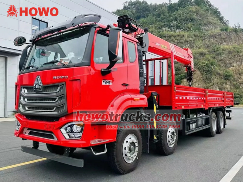 XCMG crane, UNIC crane, knuckle boom crane is optionalHOWO NX 8×4 yuk mashinasiga o'rnatilgan krani ko'tarish va tashish imkoniyatlarini birlashtirgan ko'p funksiyali og'ir yuk mashinasidir. Unda maksimal ko'tarish quvvati 16 tonna va ko'tarish momenti 40 tonna-metr bo'lgan Palfinger SPS40000 krani mavjud. Besh qismli teleskopik bum to'liq 19 metrgacha cho'ziladi va 360 daraja to'liq aylanish funktsiyasi bilan birgalikda turli ko'tarish stsenariylarida moslashuvchan ishlash imkonini beradi. Shassi HOWO NX seriyasiga asoslangan bo'lib, 273 kVt quvvatga ega 9,7 litrli dizel dvigatel bilan jihozlangan, murakkab ish sharoitlarida barqaror ishlashni ta'minlash uchun 10 pog'onali uzatmalar qutisi va havo tormoz tizimi bilan jihozlangan.