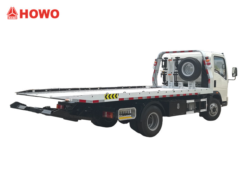 HOWO 3Ton tekis yuk ko'taruvchi tros asosan buzilgan transport vositalarini, baxtsiz hodisa sodir bo'lgan transport vositalarini yoki noqonuniy to'xtab turgan transport vositalarini yo'lda uzluksiz harakatlanishni ta'minlash uchun tozalash uchun ishlatiladi. Howo RHD yengil shassisida o'zgartirilgan, 3360 mm g'ildirak bazasi, WLY6TS55 vites qutisi, 7.00R16 shina, konditsioner, USB, yo'nalish yordami bilan jihozlangan halokat qutqaruv vositasi. Cummins ISF3.8S3141 141HP dizel dvigateli, 4 silindrli qator bilan jihozlangan. Yuk mashinasi 3 tonna yuk ko'tarish quvvatiga ega platformaga, 21 metrli ledjkaga, g'ildirak kronshteyniga ega. U magistral yo'llarda, shahar yo'llarida, to'xtash joylarida va boshqa joylarda keng qo'llaniladi.