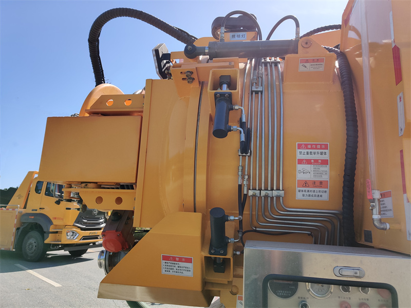 1. Vakuumli so'rish tizimi: Jurop PVT400 vakuum nasosi salbiy bosim hosil qiladi, keyin u so'rish qo'li orqali 6,7 kubometrli uglerod po'latdan yasalgan bakga so'riladi. Bakning yuqori qismiga toshib ketish klapani o'rnatilgan bo'lib, u avtomatik ravishda toshib ketish signalini beradi va teskari oqimning oldini olish uchun so'rish portini yopadi. So'rish qo'li turli ish holatlariga moslashish uchun ko'tarish, orqaga tortish va aylantirish uchun gidravlik jihatdan sozlanishi mumkin.