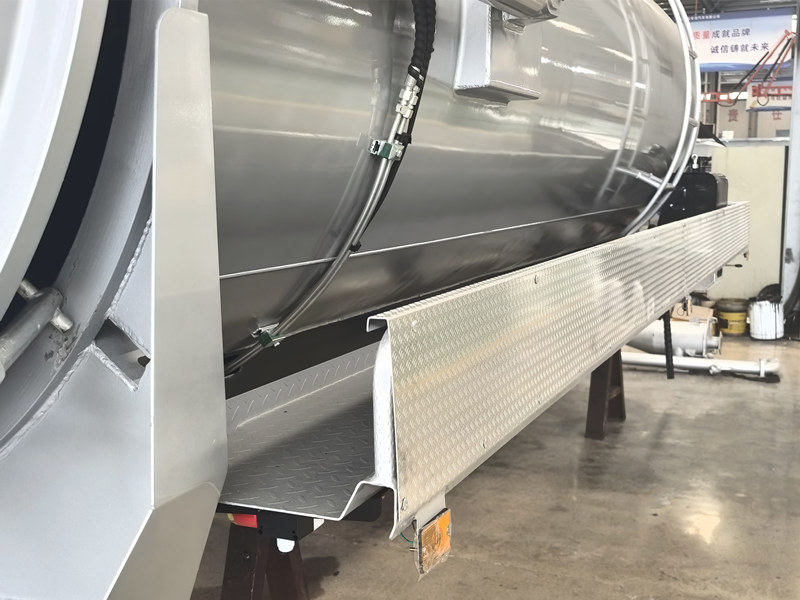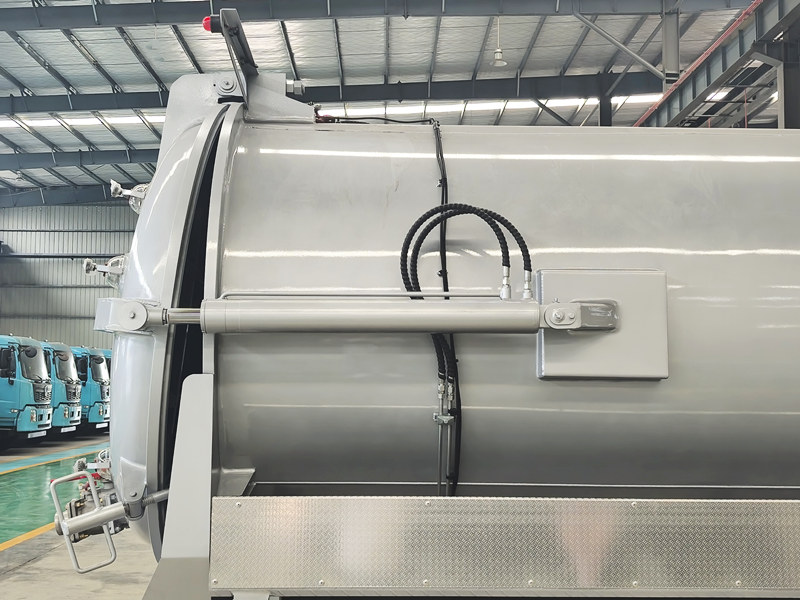 ●Avtomobil gidravlik chiqindilarni yig'ish tizimi bilan jihozlangan bo'lib, u butun bakni to'liq tushirish va yuvish uchun qiyshaytiradi, qoldiqlarni kamaytiradi va ichki qismni toza saqlaydi. Butun jarayon muhrlangan bo'lib, ikkilamchi ifloslanish va hid tarqalishining oldini oladi, toza va gigienik ish muhitini ta'minlaydi.