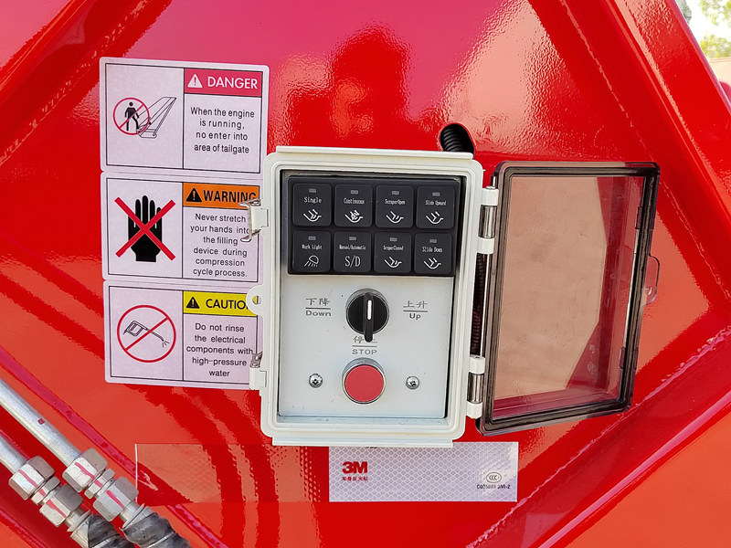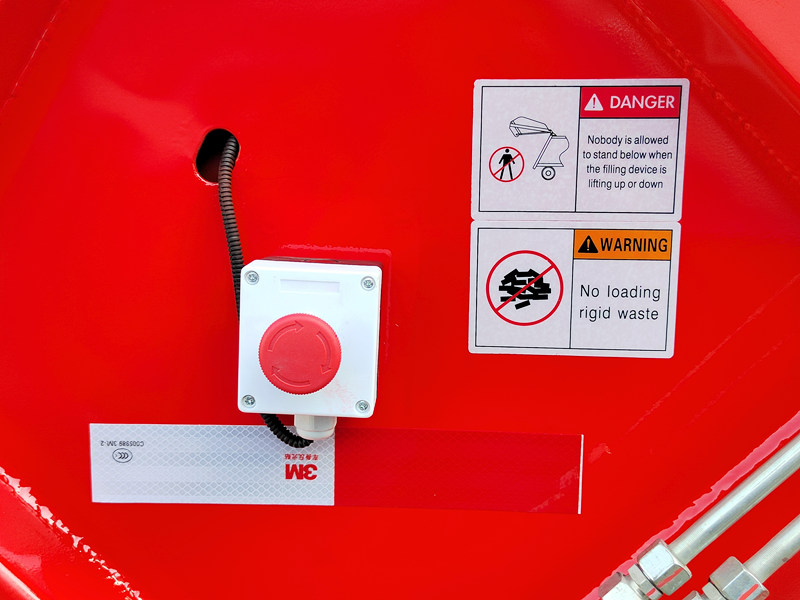 ►Maxsus ishlab chiqilgan favqulodda tormoz tugmasi chiqindilarni siqish mexanizmini istalgan holatda yoki holatda to'xtatishga imkon beradi, bu esa xodimlar va uskunalarning xavfsizligini ta'minlaydi.