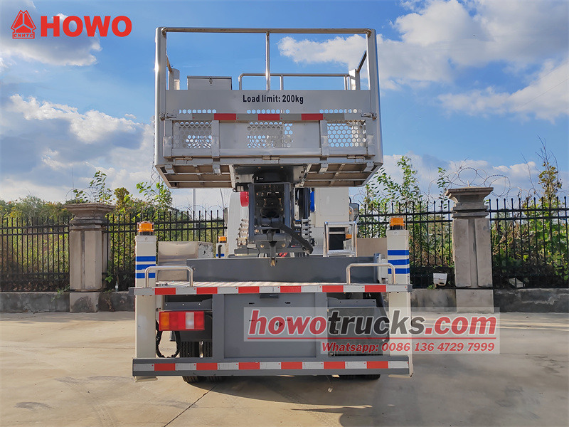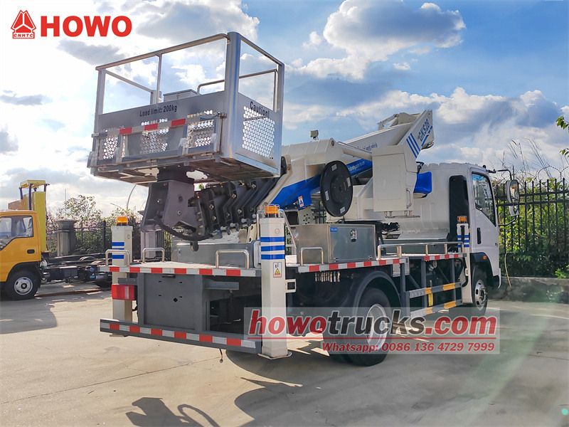 Ushbu RHD Sinotruk havo platformali yuk mashinasi 4500 mm g'ildirak bazasiga ega HOWO RHD yengil yuk mashinasi shassisiga ega. U Weichai WP2.3Q140E62 dvigateli va WLY6TS55 transmissiyasi bilan jihozlangan. Yuqori korpusda yerdan va aylanuvchi patnisdan boshqariladigan 6 qismli teleskopik bum mavjud.boshqaruv qutisiyoki masofadan boshqarish pulti orqali. U 360 darajaga aylanishi mumkin daraja, to'rtta gidravlik amortizator, maksimal 200 kg yuk ko'tarish quvvati, alyuminiy qotishma panellari va naqshli sirpanishga qarshi yo'lakchaga ega. Shuningdek, u tungi ishlaydigan chiroqlarni ham o'z ichiga oladi.
