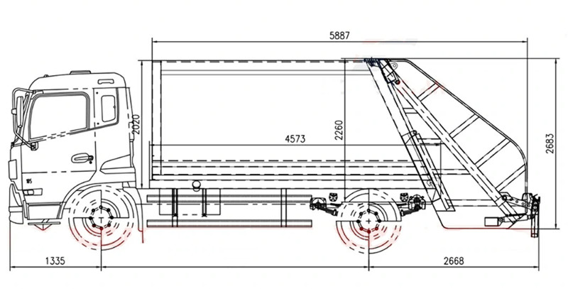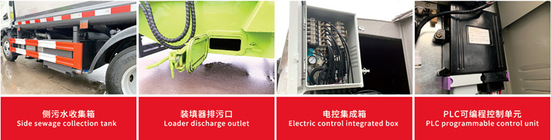 ●Avtomobil orqa tomonida qiyshaytirish mexanizmi bilan jihozlangan bo'lib, u axlat qutilari yoki bunkerlarni avtomatik ravishda qiyshaytiradi va axlatni siqish kamerasiga yuboradi. Gidravlik itargichlar axlatni bir necha marta siqib, uning hajmini asl hajmining uchdan bir qismigacha kamaytiradi va yuk ko'tarish qobiliyatini sezilarli darajada oshiradi.